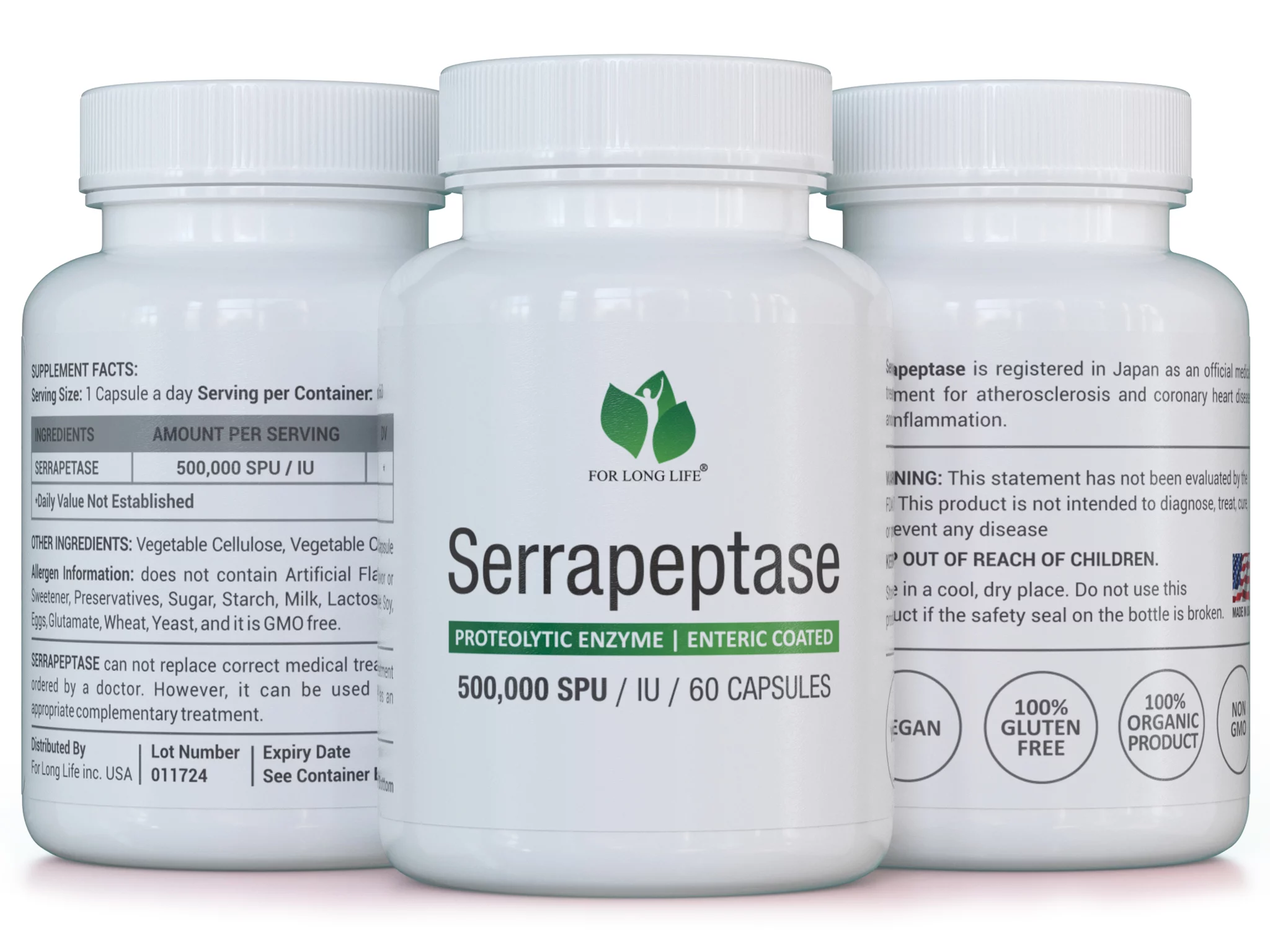 Proteolytický enzym Serrapeptáza (minimálně 500 000 SPU/SU v každé kapsli).